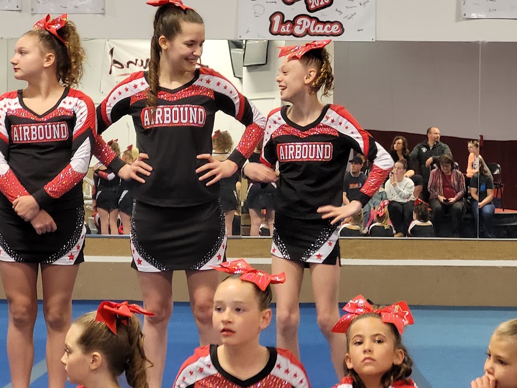 Air Bound is a facility that teaches cheerleading, tumbling, and gymnastic skills from age 3 to adults. The classes are taught once per week each 8 week session. Private lessons are also available. There is a progression of skills that the students must pass to advance to the next level. They begin with very basic skills like summersaults and cartwheels in the white star level and progess through black, red, silver, and gold levels. Each level becomes progressively more difficult. Some of the skills include: roundoffs, front and back handsprings, standing back flips, aerials, front and back walkovers. The higher levels combine multiple elements and add twists to increase the difficulty. The ratio of coaches to students is usually 1 coach per 5 students. They have a trampoline track, foam pit, two full-size trampolines, and a large floor area that is spring cushioned to protect joints. Party reservations and open gym nights are also available.