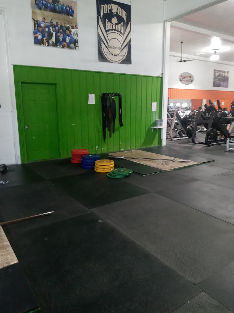 This gym is the place to get fit, firm and gains. It has everything you could want in a gym, its huge! Factory Fitness has a basketball court in a fully lit backyard, next to a HIIT circuit machine and other workout items outside.