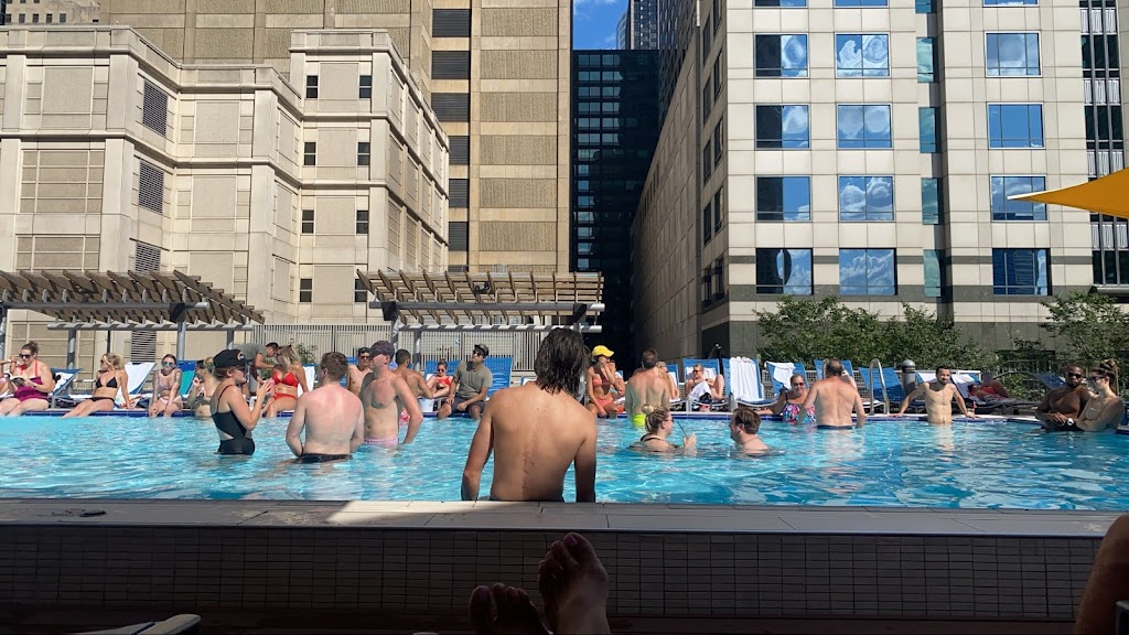 The FFC West Loop health club is next to Ogilvie Transportation Center and offers services and amenities such as Pilates, a full-service spa, nutrition services, group fitness classes like spinning and yoga, weight training, HIIT, small group training, a beautiful outdoor rooftop pool and bar, indoor pool with aquatics, and a new recovery lounge to help you reach your fitness goals.