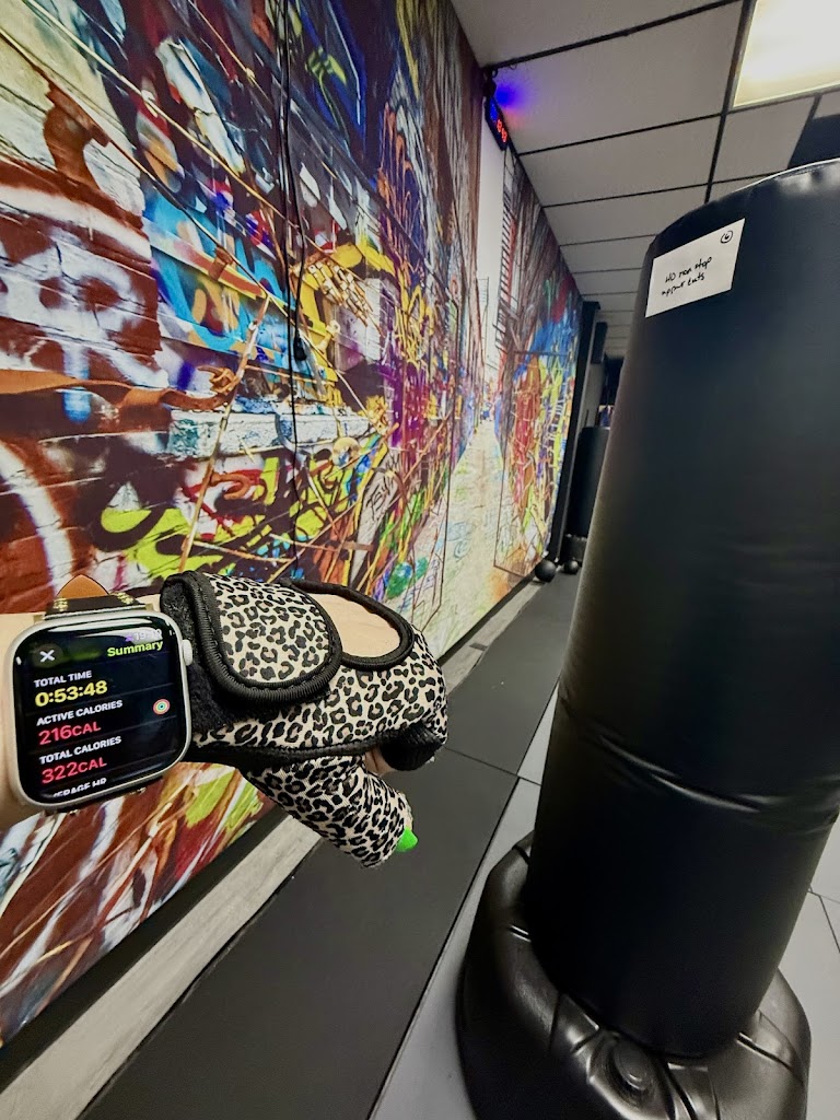 The instructor was amazing, especially for a first-timer like me. They patiently went over proper form, making sure I felt comfortable and confident before diving in. The class started with a cardio warm-up and resistance band training, which got my heart pumping right away. Then we moved into 7 intense rounds of kickboxing mixed with cardio and static holds between rounds to bring our heart rates down. It was challenging but so exhilarating to hit the bag and feel that energy!