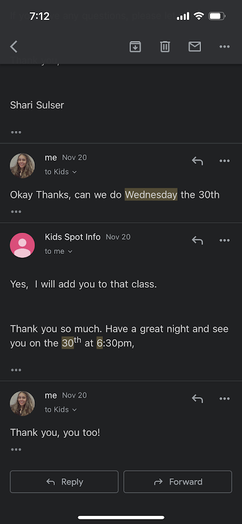 I received a call from Kids SPOT today, informing me that my daughter can no longer attend her recreational tumbling classes. Our family has been part of the program since 2021, but the owner has decided to remove my daughter after she decided to pursue a new cheer program. While other athletes from different programs are still allowed to participate, my daughter and I are no longer welcome. This decision seems unfair and unprofessional, and I fear it may be indicative of how staff members are treated as well. If you have a child who goes there or plans to go there make sure you don't tell them you are also with another program they might kick you out too. Now on to bigger and better things for my daughter. Please share this with your friends and family so Kids SPOT doesn't disappoint other children for trying to be a better athlete.