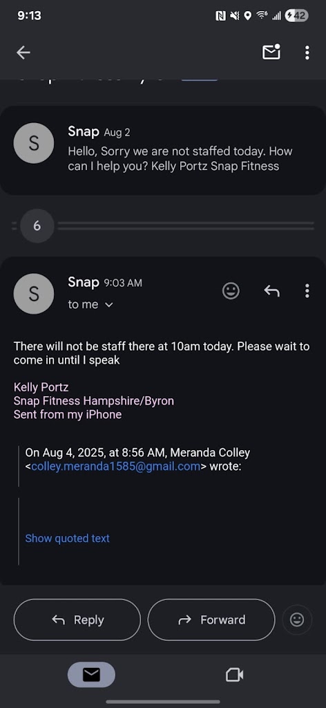 If I could put no stars I would. Full time traveler who uses Active & Fit Direct to workout. Even though my wife and I were already approved through Active & Fit we were denied a membership. Apparently this location only accepts this type of membership if they will get paid for the next year as opposed to only one month. With knowledge from working in several gyms as a trainer i know how many times I would need to scan in order for the gym to get paid and once I told Kelly, the "manager" she got ugly and wouldn't allow me to speak. She could not simply email us a good time to come in and sign up because this location is never staffed. I don't appreciate the way we were treated by the manager. Sounds incompetent and has a really ugly attitude. It takes a special kind to work in customer service, if you can't do it then don't. Attaching a photo that shows two responses from Kelly stating they arent staffed when they should have been. The inside of this location may be clean and nice, but customer service goes a long way, and I will now travel 10 minutes further both ways just to workout because this location doesn't know how to manage a business.