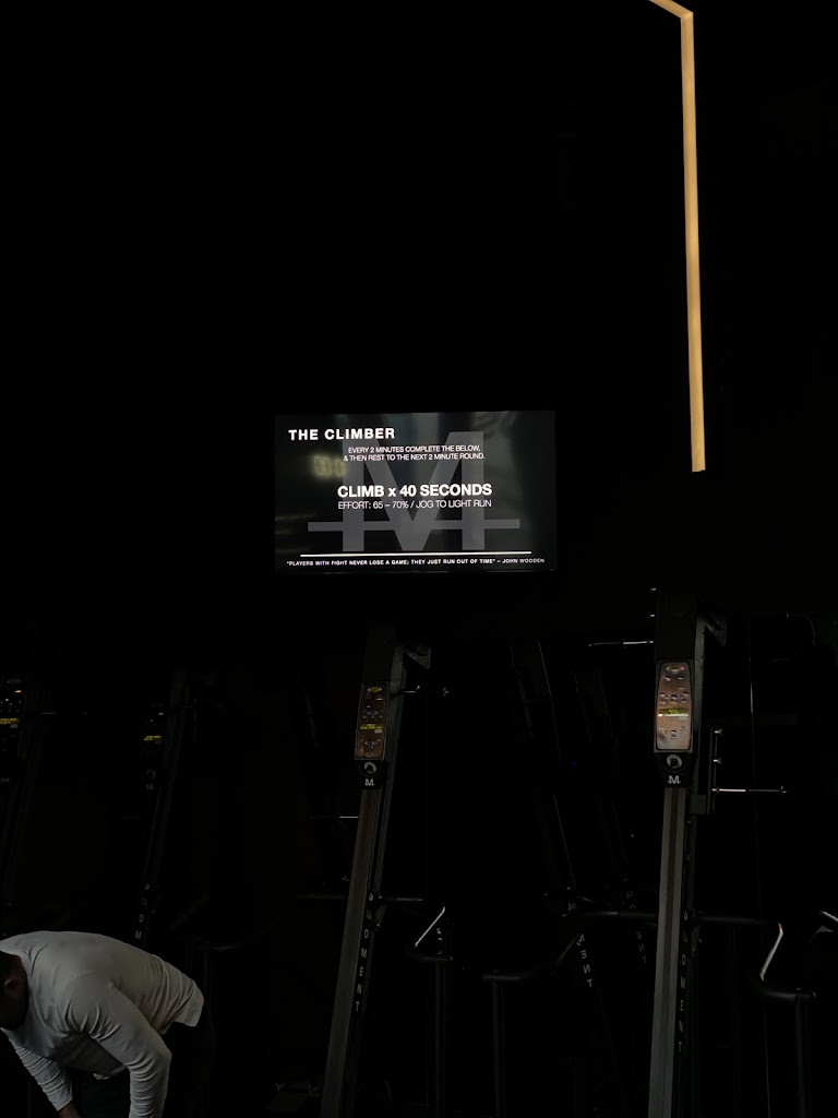 Great Strength and conditioning workout. Each workout is unique but the general jist is, they use the versa climber to get your cardio in via multiple sets of sprints varying in time, amount, etc. Versa climber is low impact ( knee saver) but high intensity to get that breathless feel. Then there is a strength component with several movements per station. The workout is as tough as you want/need it to be offering something from both beginner to advanced. The coaches demonstrate all the moves and also offer modifications that you can do if you can't do the main move, say pull-ups, or just prefer an alternative to that move that works the same muscle groups/areas. Workouts like these tend to scare people newer to fitness but in reality, the quality coaching can work for anyone. I found the amount of weights to be awesome, didn't have to worry about not getting my preference and the coaching to be top notch, clear and motivating. LOVED the monitors that list all the movements the coaches walk through, i tend to zone out and this was a great place to remind me of what I was supposed to do, although the coaches were extremely attentive and will also answer questions. I loved the music, i was able to really zone out in the space and push hard. I left this workout feeling exhausted, sore and very accomplished. The facilities are clean and modern and the staff is extremely friendly. I would definitely recommend the experience to anyone.