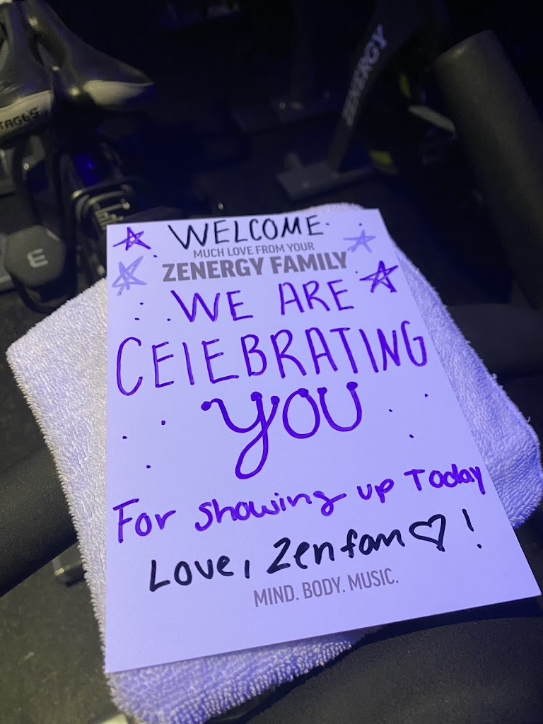 I was visiting from Phoenix and took a couple classes at Zenergy. If I ever move back to the Midwest this will be my cycle home! The classes were so much fun and the instructors were incredible! Super clean studio, I mean SPOTLESS! Everyone was so welcoming, the instructors come by, introduce themselves and make sure you have everything you need, bike is all set up etc. Cute little handwritten note on my bike to welcome me in too! Little things like that mean so much! I will definitely be back next time I’m in town!