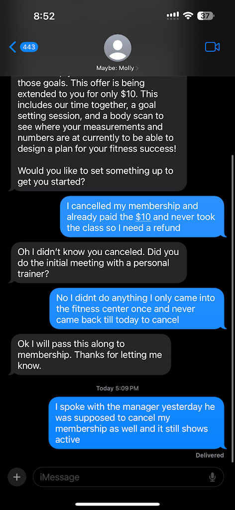 A manager traded us two free memberships against store policy and soon after they started to try to charge me. I asked them to cancel my account multiple times in person and online. They won’t answer the provided customer service email and when I was in store they told me the issue was resolved, and yet the unpaid balance continues to climb.
