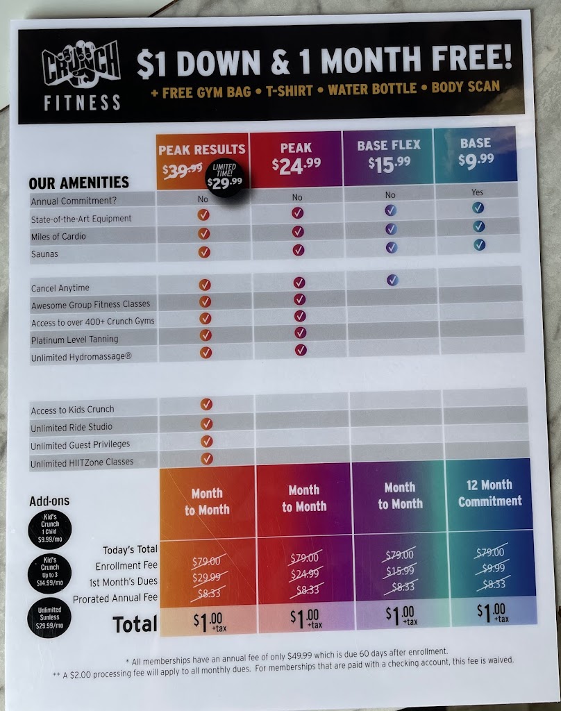 So glad they put a Crunch here! Gym has A LOT of room and equipment and for the price, you really can’t beat it! Happy to call this gym home!