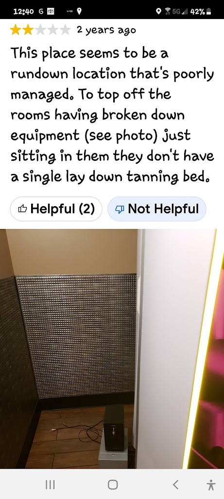 How do y'all sleep at night??? You're literally charging people money for a tanning booth.When the sun is right outdoors, for free......jeesh...some people. Save your money and GO OUTSIDE!