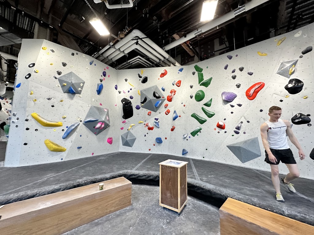Fresh, clean facility but doesn't yet have a hangboard or campus board (coming soon). Until then, warming up the fingers isn't much of an option before getting on the boulders. Setting feels similar to the North Station location in terms of difficulty and variety. Having four bathrooms is nice, but there's a bit of a lack of storage for belongings at the moment. I imagine they'll add more soon.
