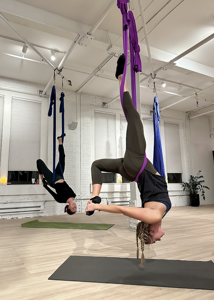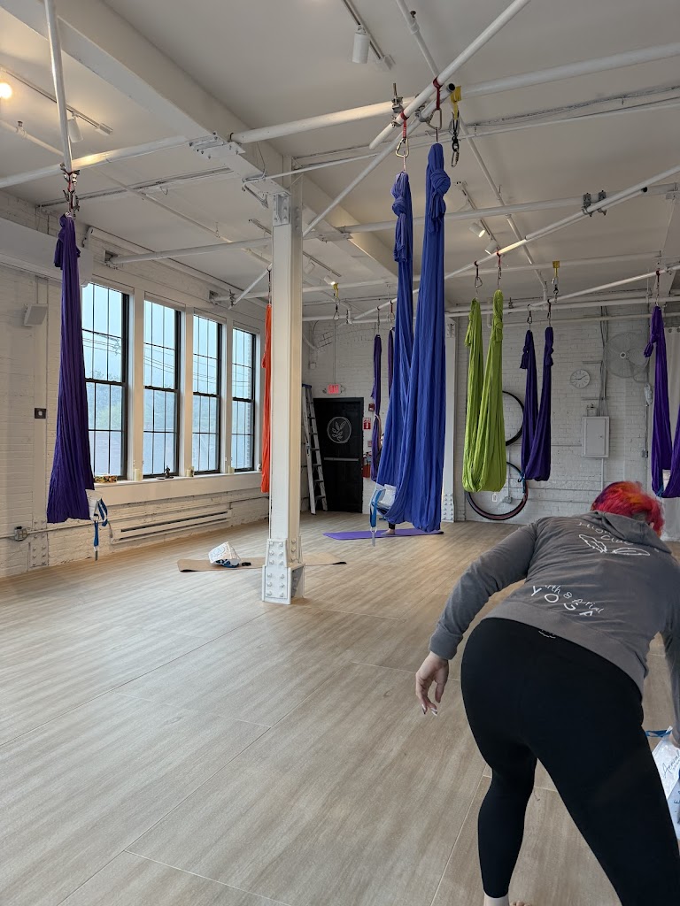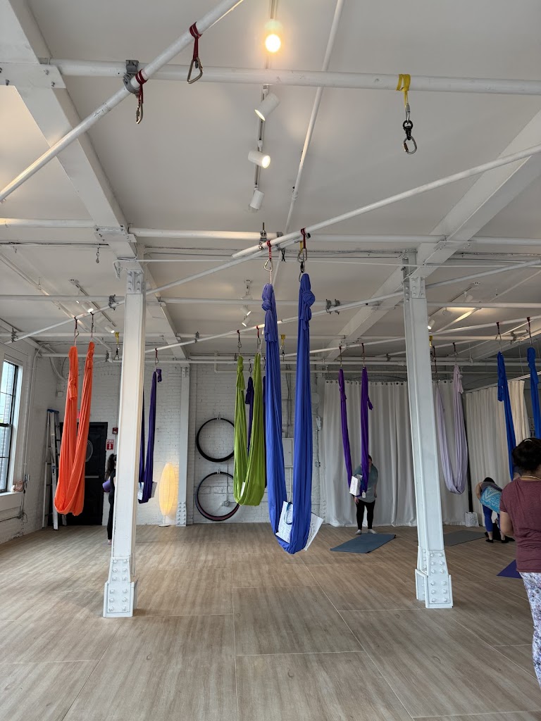 Wonderful aerial studio with hammocks and lyra, very clean, bright and welcoming! Instructors are great and classes are very interesting, definitely a fun way to do yoga/workout. Location is great as well - right next to rail trail, also “The Landing” has two restaurants right inside the building. Highly recommend!