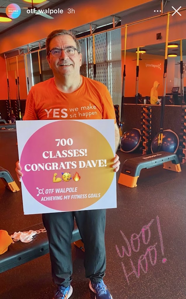 Just hit 700 classes at OTF Walpole. I have been going there for years. Orange Theory is the one workout program that I have stuck to because it programs vary daily and the coaches are great. Try it out if you have never experienced it.