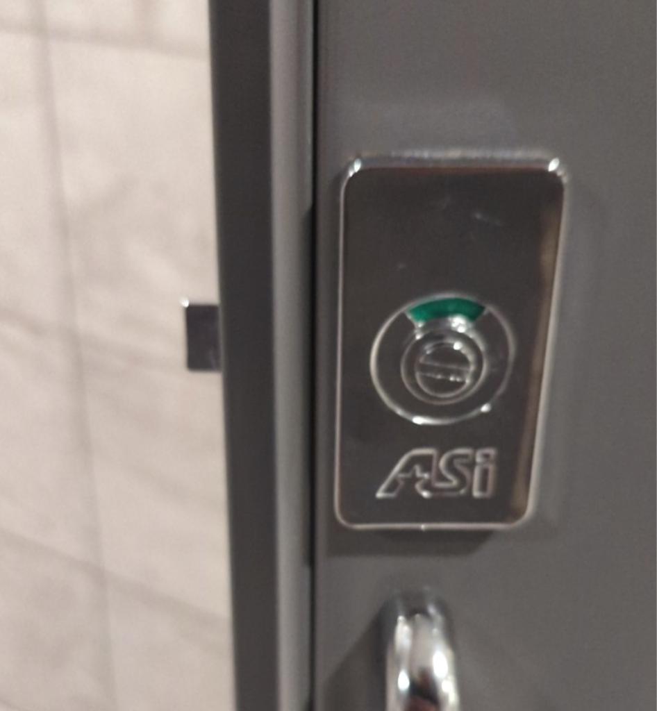 But men toilet stall / room door locks were broken. But whoever fixed them fixed them wrong.