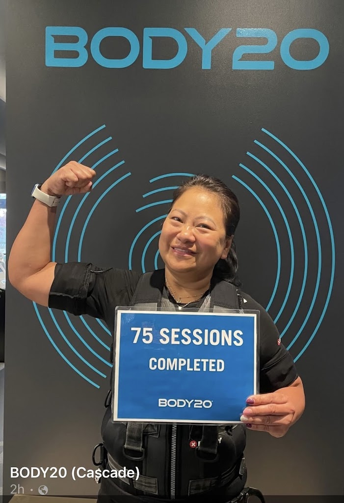 I highly recommend this workout. I was skeptical in the beginning because I was having a hard time putting on the base layer due to “frozen shoulder”. It turned out that it actually helped me heal. The EMS (electro muscular stimulation) strengthened my muscles and eventually toned it. The trainers modified my work out according to my needs because I have weak knees. I also noticed toned legs. The 20 minutes workout is well worth it. This Body20 Cascade branch is always clean and smells good. The staff and trainers are super nice.
