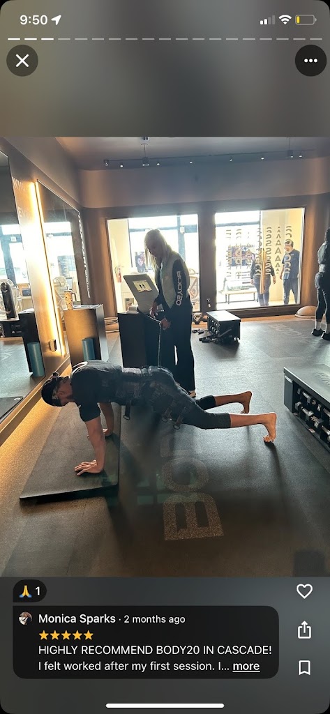 HIGHLY RECOMMEND BODY20 IN CASCADE! I felt worked after my first session. I went with my children and we ALL signed up. The staff was EXCELLENT and PATIENT and KNOWLEDGE. No hard sell- the 1st session was seriously just all about our health and needs. Give it a try, what do you have to gain!?🤗