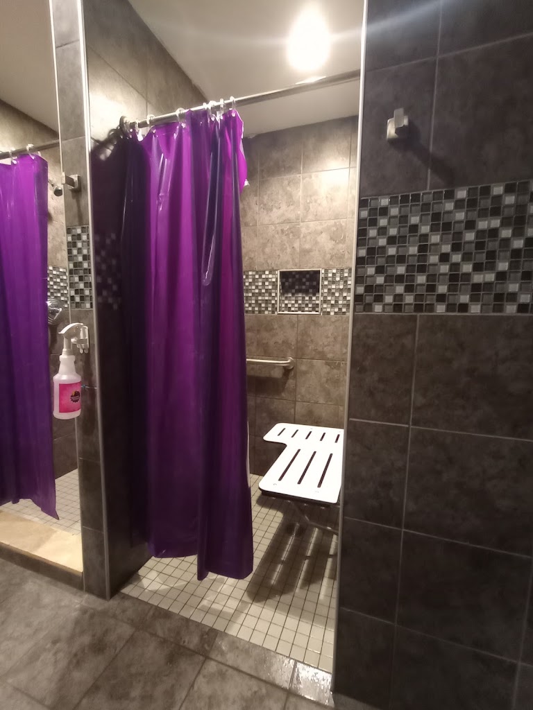 Grateful for the flat entrance, unlike Owasso, which has a high curb I couldn't get my wheelchair over to reach the entrance ramp. However, they really missed the mark with accessibility in the locker room.
