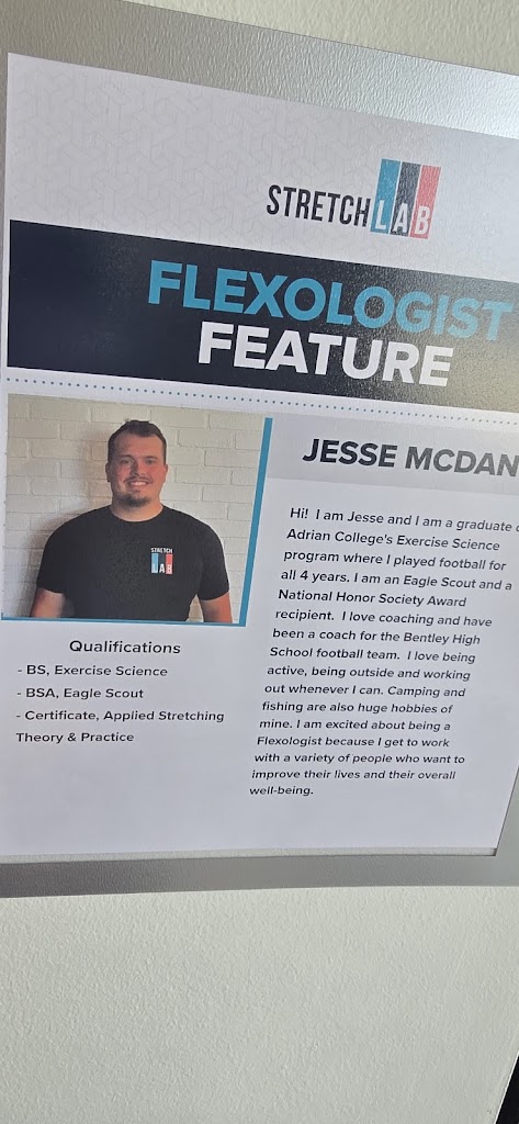 The entire crew is great to work with and makes you feel comfortable. I enjoy going as a stress relief. I'm also seeing results and gaining flexibility in my body. Thank you stretch lab of Clarkston and my new friend Jesse!