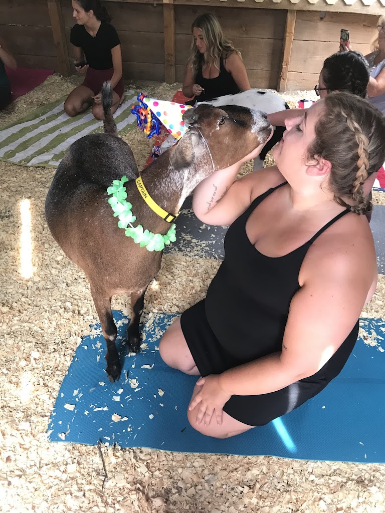 Yoga on the Farm, quite possible could be Holly's best kept secret! We brought our children here for a private family party. Gail and her team made this day so very special! The goats were dressed in party hats and they were happy to come investigate while we tried to focus on our yoga! It was a chilly Spring day so we had the ambience of a 150 year old barn! It was beautiful! Whatever expectations I had of goat yoga, Gail and her team exceeded them! Thank you Yoga on the Farm for such a nice family experience!