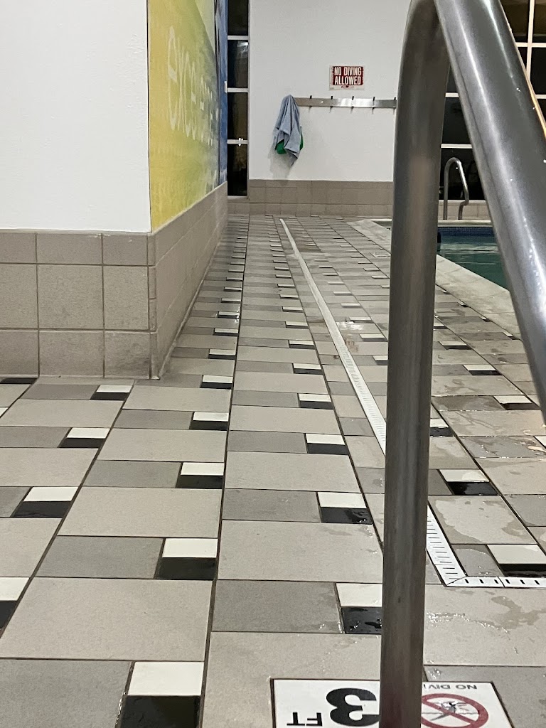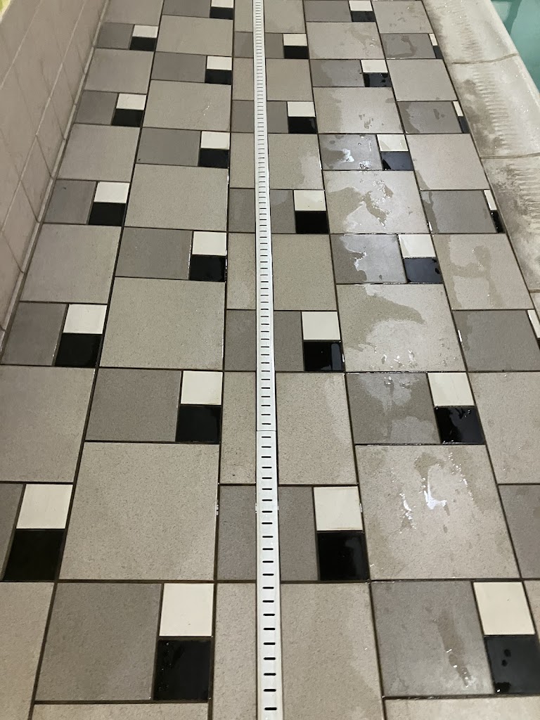 Also, the wet tile in the pool area is very slippery!! I walk very slow to avoid falling and breaking a body part. Water doesn’t drain properly and sits in various pools around the linear and round drains. They could alter the tile to eliminate this hazard. It’s dangerous. (See pictures)