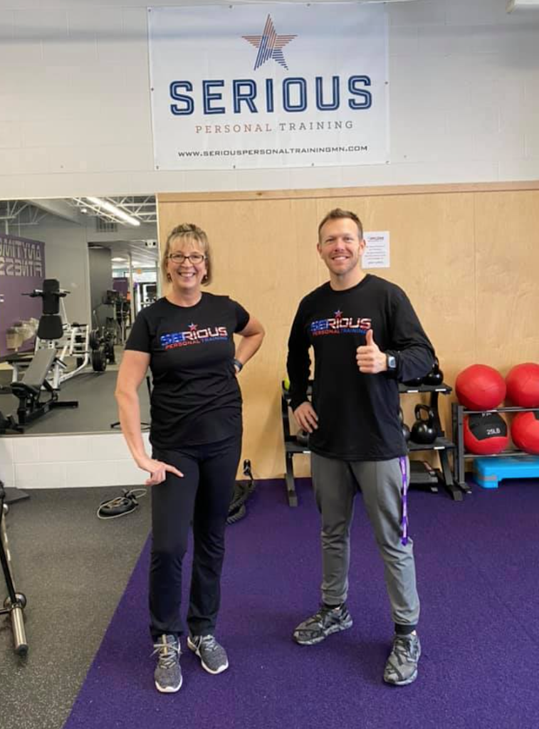 I met with a Jamie at Serious Personal Training in Mid February 2021. I was very clear on what my goals were. I wanted to lose 10-15 pounds and tone up in process. I also let him know I didn’t want to be sore to the point of not being able to move daily, I let him know I would quit if I get to that point. He said he would develop a plan that fit me and met my needs. I liked what he was telling me so I signed up & Joined Anytime Fitness at the same time.
