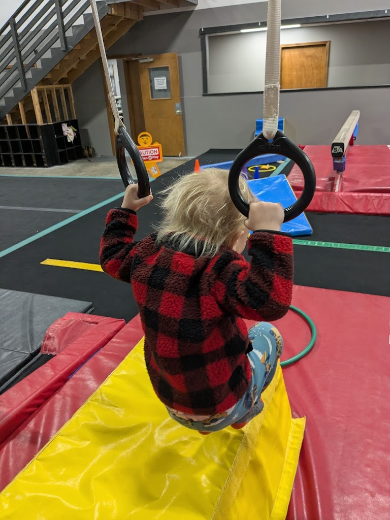We started our daughter at 18 months in the Base-campers class. Itβs been exciting to watch her grow in confidence in her abilities. Coach A plans new skills and activities every week, and 6 months later, Thursday evenings are spent enjoying gymnastics together as a family.