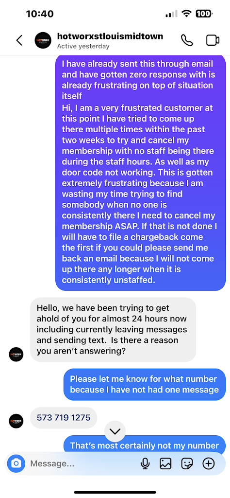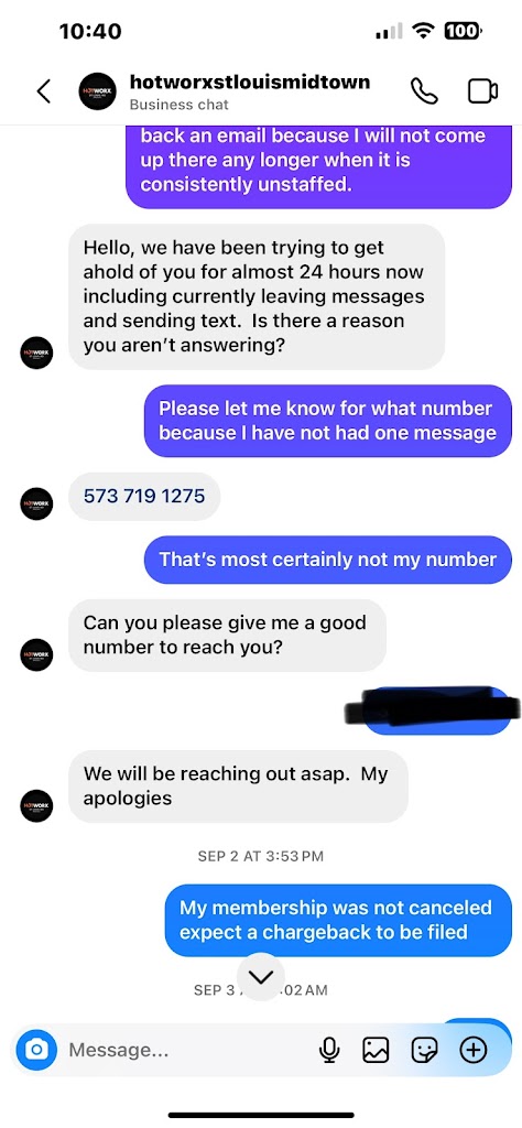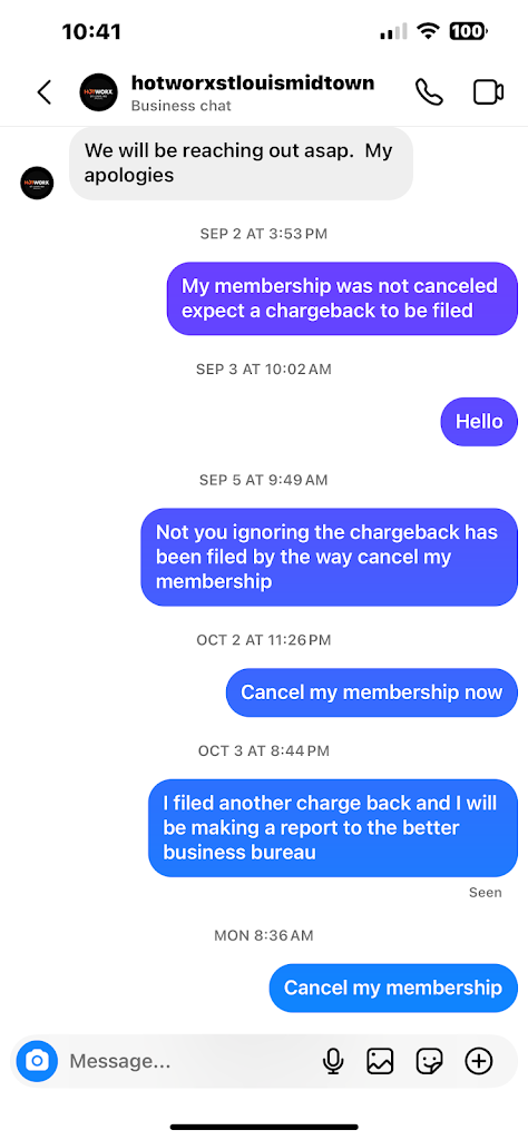 After having a HOTWORX membership for over a year, I cancelled it via email (per the store managers instruction) on February 20, 2023. The manager told me the cancellation goes into effect within 60 days of sending the email. He acknowledged my email when I sent it and said I was all set. I was still (unexpectedly) charged in May, June, July, and August of 2023. I’ve been reaching out to the general manager at HOTWORX every week (typically 2-3 times a week) to get this taken care of. They were able to stop the charges and end my membership, but they still haven’t refunded me for the months they incorrectly charged me (may-august). This business owes me hundreds of dollars. I eventually gave up and realized the money wasn’t worth the time I was spending following up with their incompetence. Do not go here; you will regret it. They are thieves