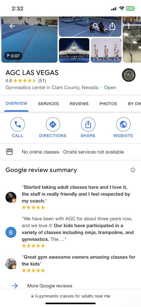 My son had such a great time at AGC before we had to move. The coaches are truly fantastic and give consistent feedback. Night and day difference between previous gyms where theyβd never correct bad form and let a lot slide. If your kid is serious about acro or gymnastics this is the place in Vegas.