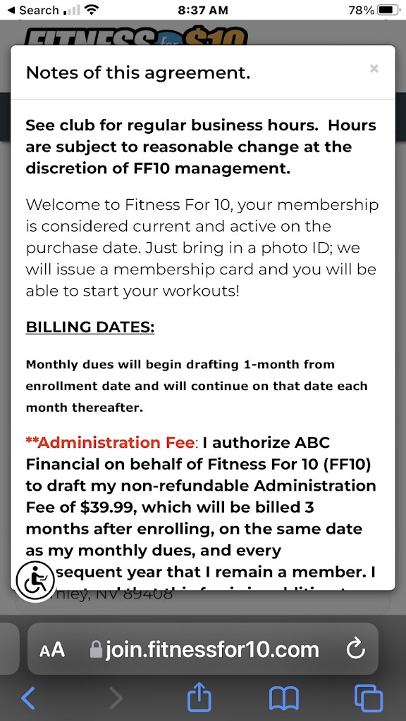 Keep replying with lies,and you will continue to get a 1 star. Don't sign any contracts with this gym,no one has contracts anymore! Go to planet fitness where you can sign up with no fees,and cancel anytime you like without hasses or fees. The owner of fitness for 10 has expressed his true feelings about his members,and how he could careless if they workout or not,he still gets paid no matter what.
