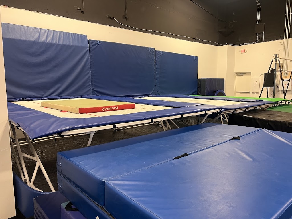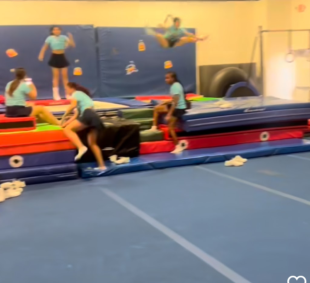 Our fully air-conditioned 6,000 sq. ft. facility is also available for gym rentals — ideal for competition team practices, warm-ups, and group activities. The gym features a spring floor, tumble track, rod floor, double mini, trampolines, aerial points, and full gymnastics equipment.