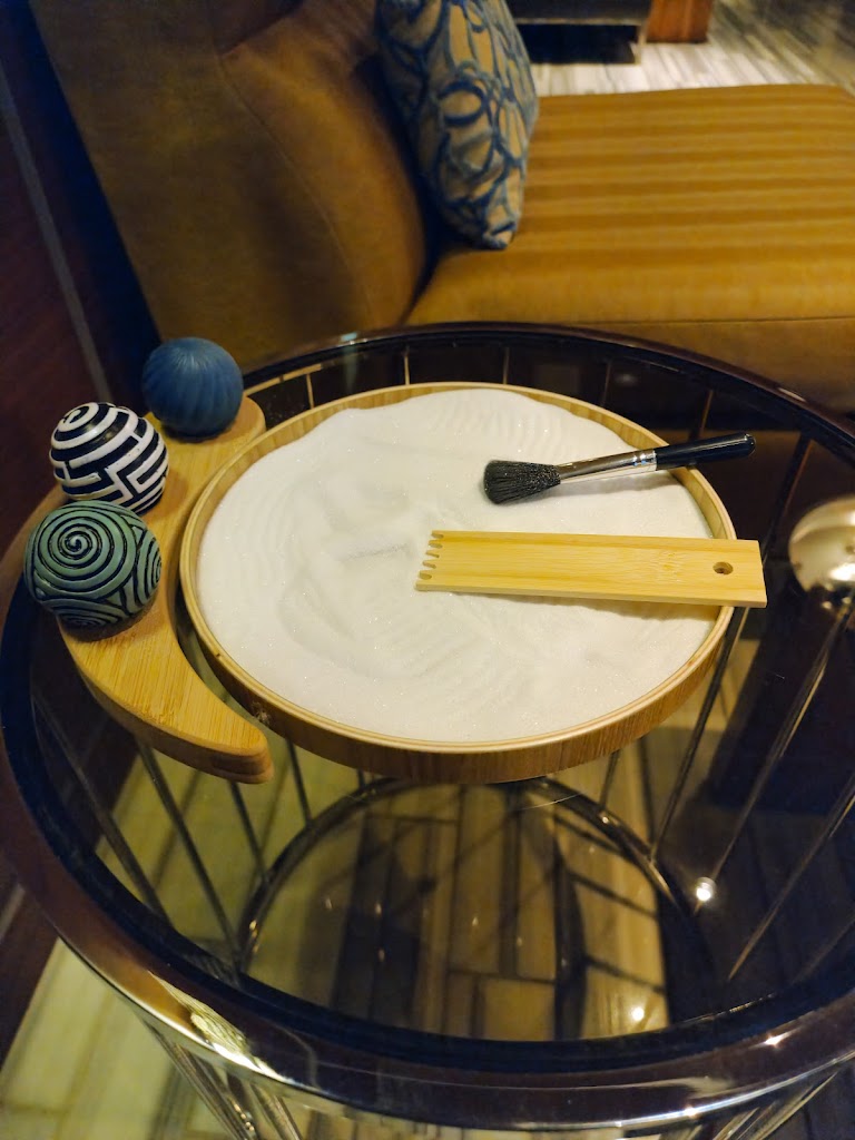 My massage therapist wore gloves - between the sound and the feeling it really ruined the massage. I think it affected how well she could feel my muscles because she kept pulling my tendons over my bones in a way that hurt and felt like they should not be pulled in that way. Also, they don’t show you the meditation lounge until right before your appointment - I would have really loved to sit in there for a while before my appointment. They make you pay and tip in advance. The spa is very beautiful otherwise. Make sure you get them to show you to the meditation lounge with time to relax.