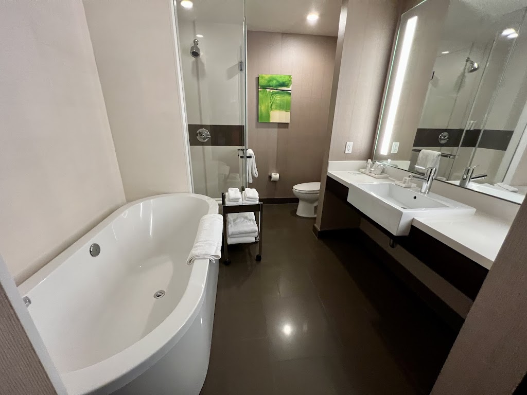 The smoke free environment was great. The bathrooms included a large soaker tub, shower and storage. Ingenious doorbell system of three colors showing a non occupied room, another color for servicing room and a third for do not disturb. The staff were professional and friendly. Our room was on the 37th floor of 53! The express elevators were smooth and fast!