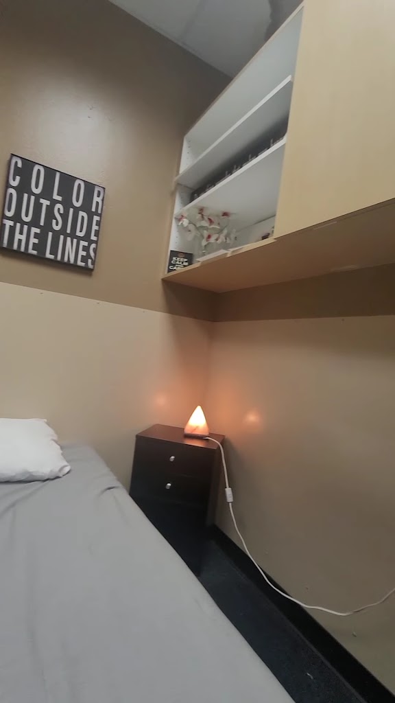 Tiny but mighty! They have sleep rooms, lockers and cleans showers. I love going there after work and unwinding. The staff is wonderful and helpful. Whether you come in once a month or every day they treat you great! Love, love, love this place!