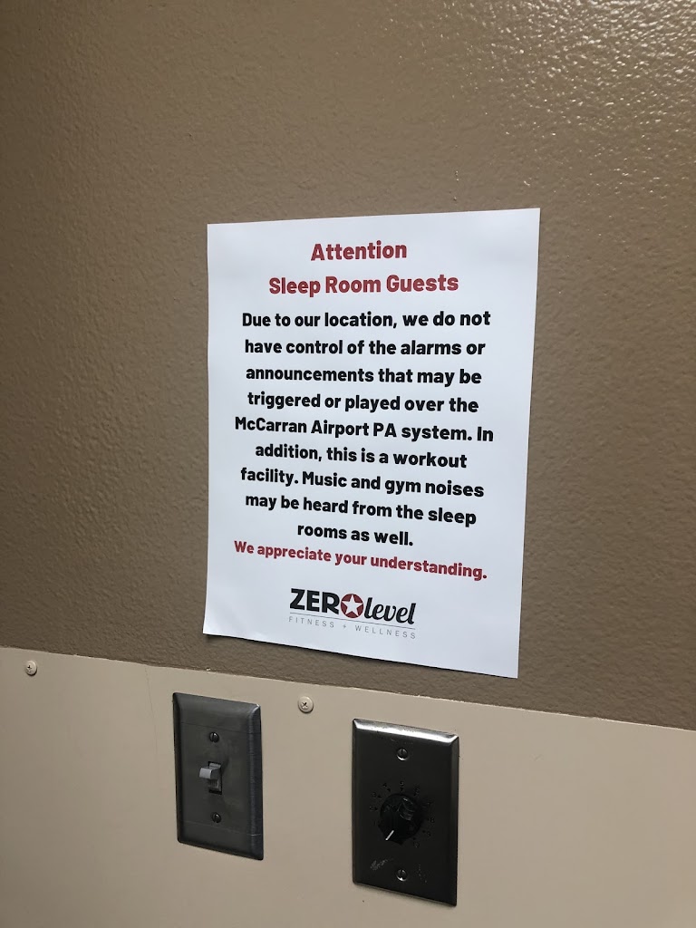I had a big gap between the end of my event for work and my flight. I had a big suitcase and a large tote and no vehicle, and I didnt want to drag everything around. I searched online for sleeping rooms in the airport and found ZEROlevel fitness. The room is pretty simple but it met all of my needs. I was able to complete some work, take a nap and relax prior to my flight. They do warn you that because it is a gym you will hear music and other noise. It's true, I heard the gym music the entire time in my room, but it didn't bother me. Just an FYI for light sleepers. Overall, this is a great space and I would use it again if I need it.
