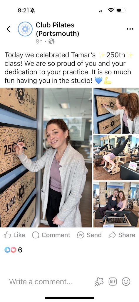 I love Club Pilates! The classes are always different and challenging. I feel taller and stronger after class. It's the perfect complement to other workouts whether that's running, lifting weights, or yoga, I get a completely different workout from Pilates. The instructors are super approachable and want you to have a great class. I've been at the Portsmouth CP since they opened and was at a different location prior to that. It's the best!