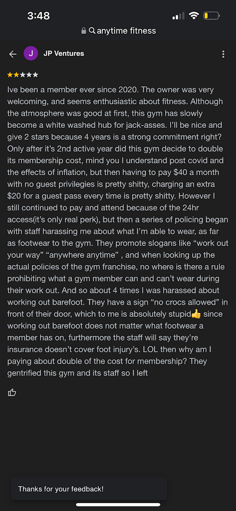 I’ve been a member of this gym for almost a year and it’s been such a great experience. The staff was super knowledgeable and transparent about pricing and the options I had when first joining. I have since then visited a number of AF locations in various cities and states, and this has been the most well maintained and cleanest location of them all. Equipment is seldom broken and always repaired quickly. The owner clearly cares about the gym as I’ve seen a new lat pulldown, ellipticals and most recently a ski erg machine added.