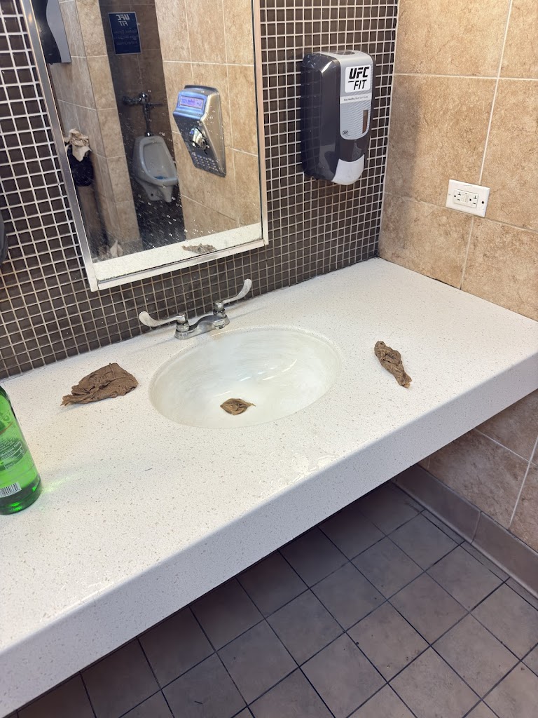 - The bathrooms are a disgusting mess that have never been cleaned. Paper towels all over the floor, nothing restocked. Soap dispensers not working, toilets full of excrement.