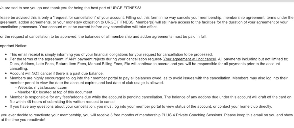 Do not join ! Worst staff EVER...unknowledgeable and Managers driven by membership retention not customer service. When I opted for membership the Coach alerted me that I could rescind my membership within 60 days if "Urge was NOT right for me", I HAND delivered my termination on 3-9-2023 to this location but they NEVER received it ??, I was later told termination letters can only be given directly to the managers (when they are in) and only on Monday thru Friday, moreover I was told by the Managers that the Coach who signed me up had no authority to give me the 60 day grace...so staff lied just to get me to sign on. A very shady and deceptive organization that is just motivated by membership dues... NOT health, wellness or consumer satisfaction.