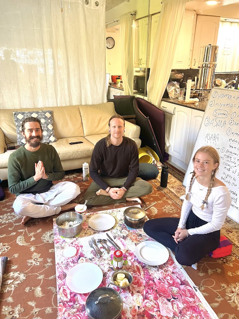 We offer yoga as a comprehensive spiritual lifestyle training to individuals and communities, including meditation lessons and Γ‘sanas (yoga postures) tailored to individual needs, vegetarianism, social service, and a holistic approach to life. Please check our websites and contact us for an appointment to learn more or try a yoga and meditation class. When calling, please leave a voicemail.