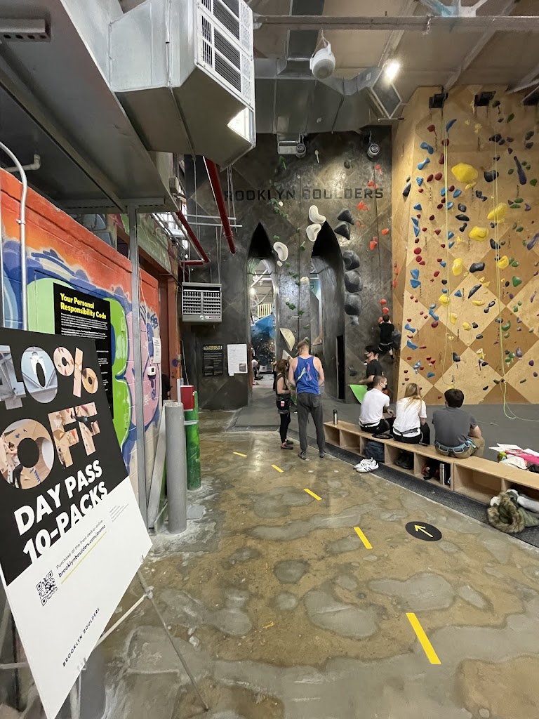 I have mixed experiences at the OG Brooklyn Boulders. It's got a lot of interesting climbs and feels smaller than the Queensbridge location. The walls for ropes are also shorter/there are less. It's also interesting because they don't have single gender-neutral bathrooms like the Queens location so there's a bathroom you have to go into to wash your hands versus a handwashing station which makes it annoying due to covid limitations of how many people can be in the bathroom when that's also a changing area.