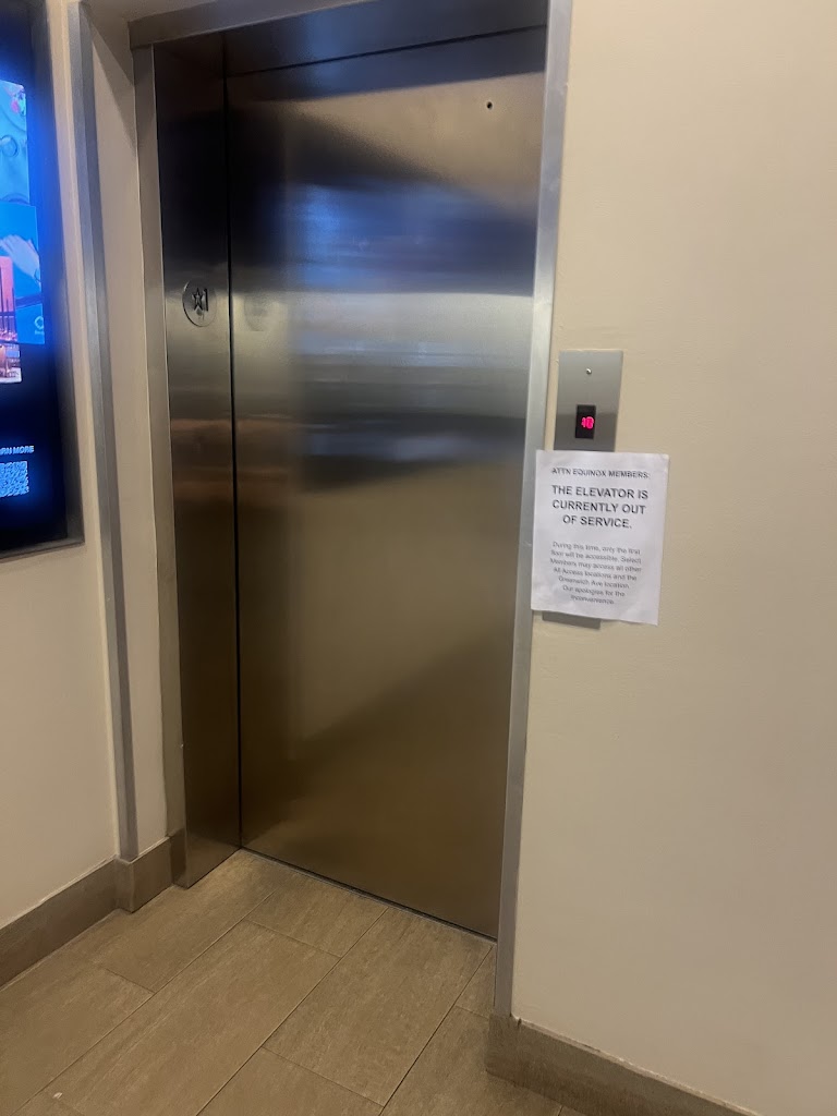 Update: I’ve been going to this location for three years and the elevator situation has never improved. It is regularly out for maintenance and some days there is no email from equinox stating the elevator is out of service. So you show up to the gym and can’t access the locker rooms or showers. Horrible. And for the money we pay it’s downright insulting.