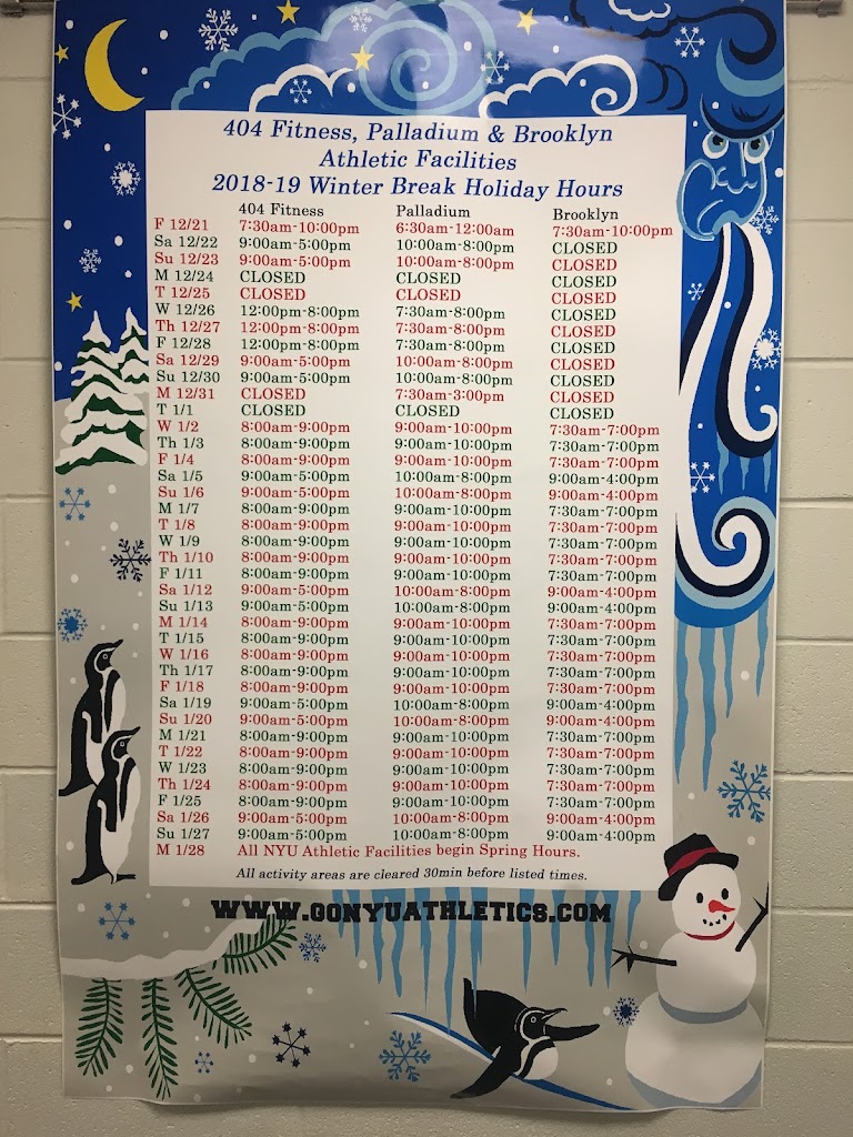 Very good aerobic room& rock climbing facaulties; Aux room(with yoga balls) is always occupied by clubs in the evening; Best part: closes at 11:30p on weekdays!! so convenient! And, close to the Palladium dining hall(best NYU dining hall!)
