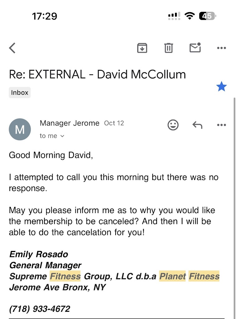 Customer service always been very professional. My returns to PF was on this week. I had a special guest that at the same time he been my personal trainer, besides the one at Planet Fitness. Thanks PF