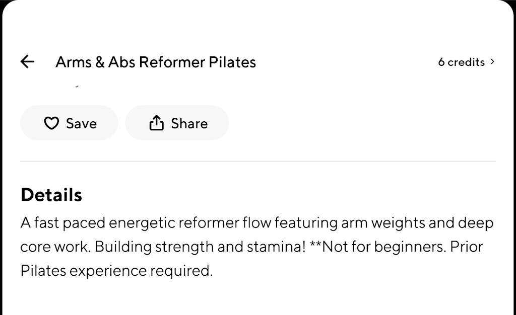 Not welcoming at all. While I acknowledge I signed up for the expert class without reformer experience, the ClassPass description only stated "Prior Pilates experience required"—not specifically Reformer Pilates experience (see screenshot).