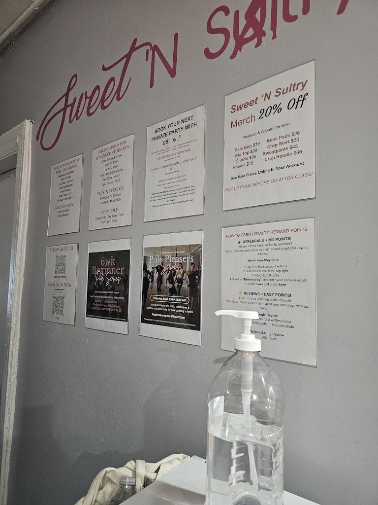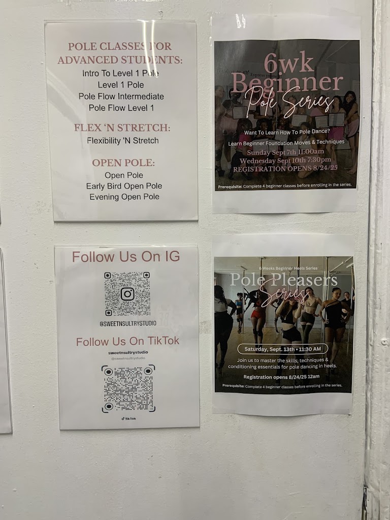t's almost been 5 months since I started going to Sweet N Sultry Studio for their pole classes. I can honestly say the staff is very friendly and nice, the place is always clean, and I leave each class learning something new with a smile on my face. Each instructor has their own enjoyable style. Try each instructor, and you'll be very pleased.