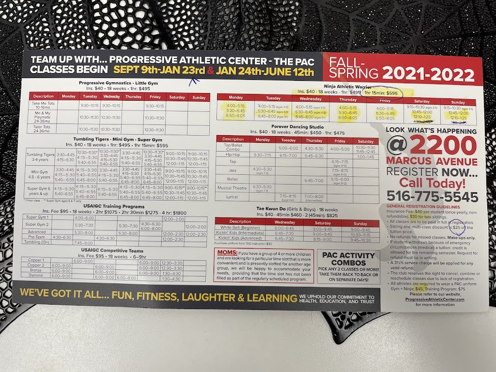 Progressive Athletic Center (PAC) in New Hyde Park, NY, delivers fun, structured athletics for kids aged 2-12. With specialized programs in gymnastics, advanced gymnastics, USAIGC competitive team, Ninja Athletic Warrior, dance, Tae-Kwon-Do, preschool classes, adult fitness, summer/full-day camps, and birthday parties, PAC promotes physical development, creativity, discipline, and confidence under experienced instructors. Their mission emphasizes safe, inclusive environments, trial classes, and year-end showcases.