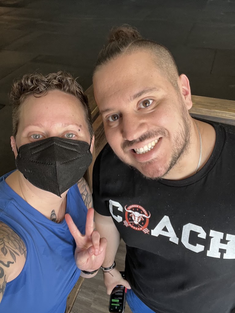 Personal picture: Coach Nic Ilijic changed my life. Before coming to Courage Fitness, I had hip and back pain every morning and after even gentle exercise, and just HURT. I was so discouraged, especially after a running injury earlier this year. Coach Nic and I met for a Discovery Call appointment and mobility evaluation. My spouse had worked with Nic previously, and that helped me with this initial appointment, which really did require some trust. As a primary caretaker and someone with CPTSD, it means a LOT to receive care and attention—especially physical training— that doesn’t raise fear or anxiety.