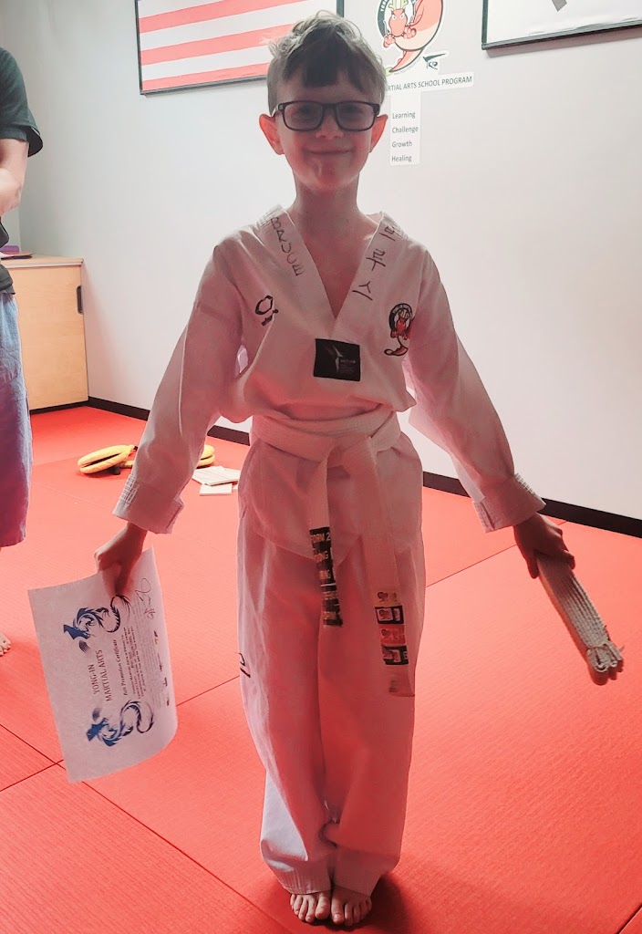 Kimβs Yong-In Martial Arts has been a great inspiration and experience for my son. My son who is high functioning Autistic that has troubles dealing with loud noises and groups of people especially with confronting and communicating with others. He has opened up a lot over the past few months and has now graduated to yellow belt. He has become more communicative with speaking up and controlling his body. It was absolutely inspiring to watch him complete his belt trainings and break boards. The over all experience is great for all kids and adults as it builds discipline, confidence and patience not to mention a great full body work out to burn off the game room calories.