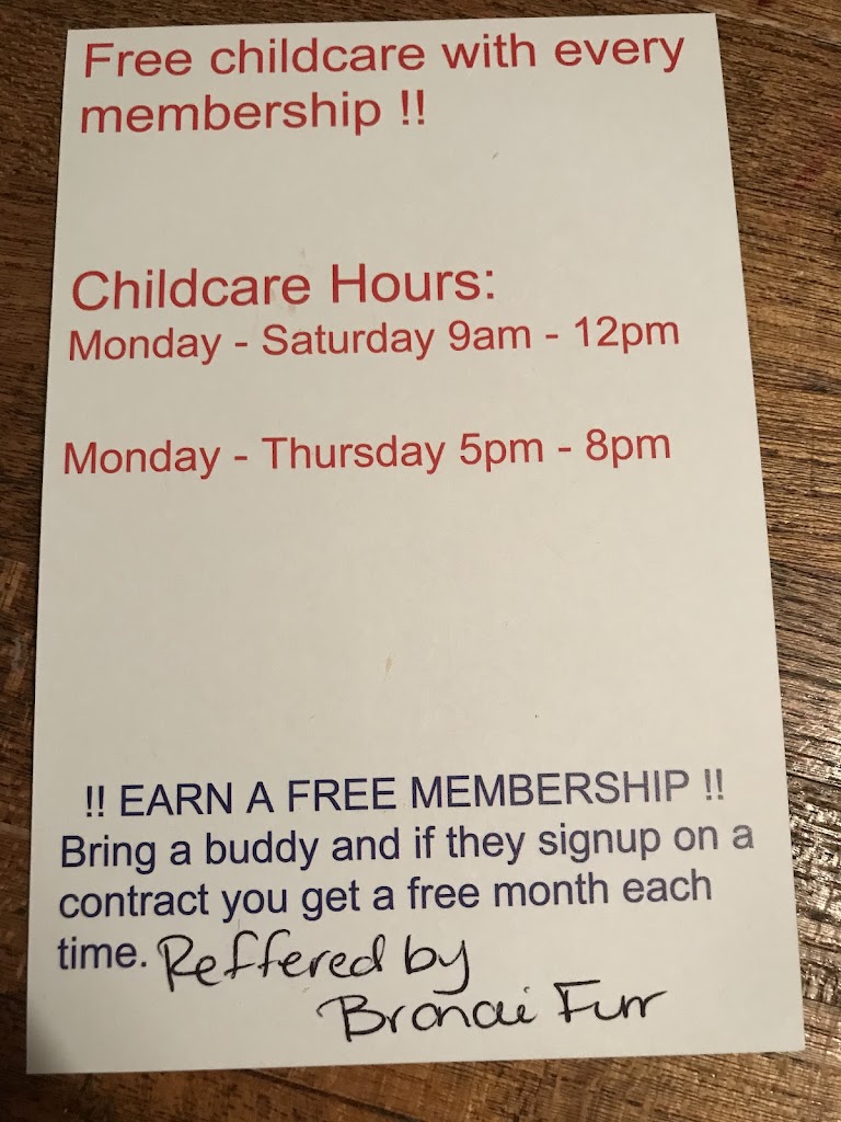 Nice clean family friendly gym with 28,000 sq ft to meet all your workout needs. Free childcare with any membership, saunas & showers in locker rooms. Fitness classes offered 5 days a week and free personal trainer to help you meet your fitness goals. We also provide sweat towels and Yoga mats so you don't have to lug yours back and forth to the gym. We have a full service smoothie bar to refuel after your workout. We also offer Tanning and 24 hour access for those that need it.