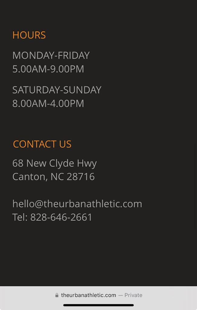 Was visiting Maggie Valley and needed a place to workout. Urban looks like a nice facility, too bad I didnβt get a chance to check it out. The hours of operation is listed as 8am on the website and the gym voicemail also says 8am. I arrived and waited and no one showed up at 8am. A member that was going in informed me that they donβt open until 9am. I was unable to wait due to prior engagements. I paid for a day pass online prior to going.