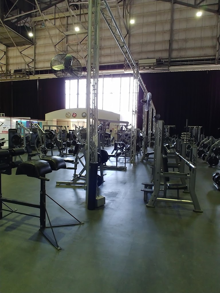 Contains free weights area, basketball area and cardio area upstairs. Air conditioning is an issue, turning very humid during the summer time given the entire gym is inside a hangar. Best times to avoid would be 1130h to 1230h and 1600h to 1800h. Plenty of locker room space. Shame itβs not open on Sundays....