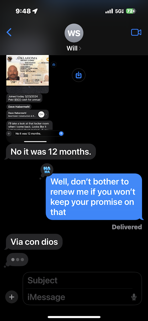 STAY THE WAY FROM THIS GYM!!!! Will it has been more then 48 hours and you have not responded to my text or calls. I don't know why you are acting childish but you need to grow up and give me a text!! Thank you.