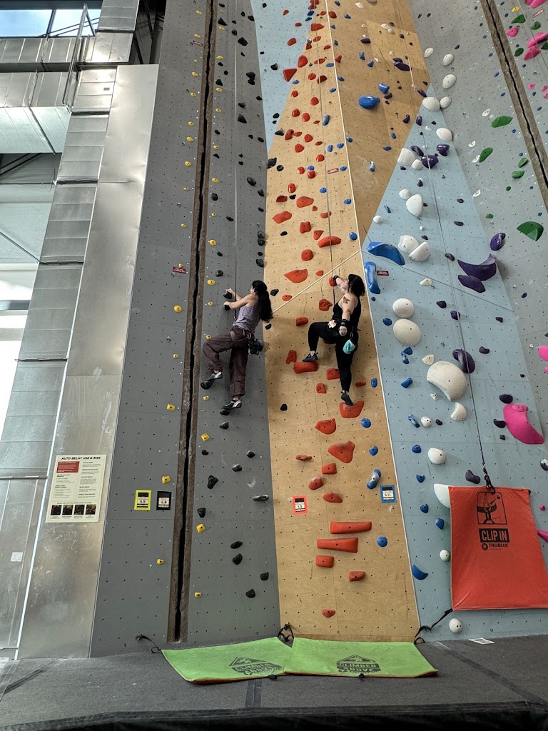 There's a lot of auto belays for you to work on your projects when you're waiting for your climbing partner. Staff (Emerson) even cheer you on when you're climbing them.